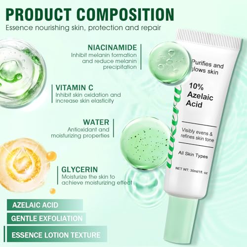 [INTENSIVER PFEIFTWÄHREN]: Das Azelaatsäuresalbein enthält nasserungsfördernde Inhaltsstoffe, die tief in die Haut einwirken. Es verbessert Trockenheitsprobleme, hält die Hautgewinnungsfaktoren auf dem Hoheitsgrad und erhöht die Weichheit der Haut. Aufgefrischend macht die Haut jünger und glatter.
