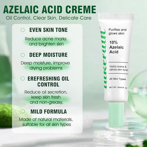 10% Azelaic Acid Serum, Reduziert Pigmentflecken, Face Cream | Gesichtscreme mit Azelainsäure & Salicylsäure, Gleichgew