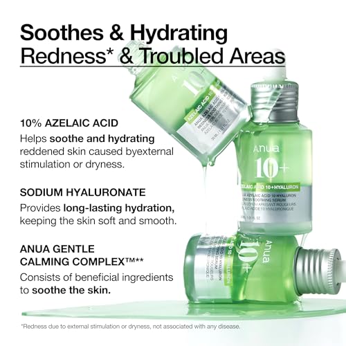 Anua Azelaic Acid 10 Hyaluron Redness Soothing Serum für sensible Haut, Hyaluron- und Niacinamide-Belüftung, Naturfarben