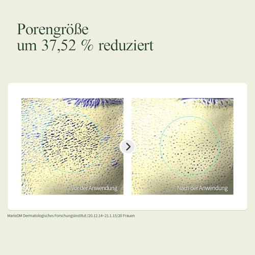 Unser Produkt bietet 24 Stunden Feuchtigkeit und reduziert die Porengröße um 37,5 %. Diese Wirkung hat klinisch belegt gezeigt: