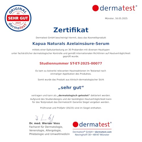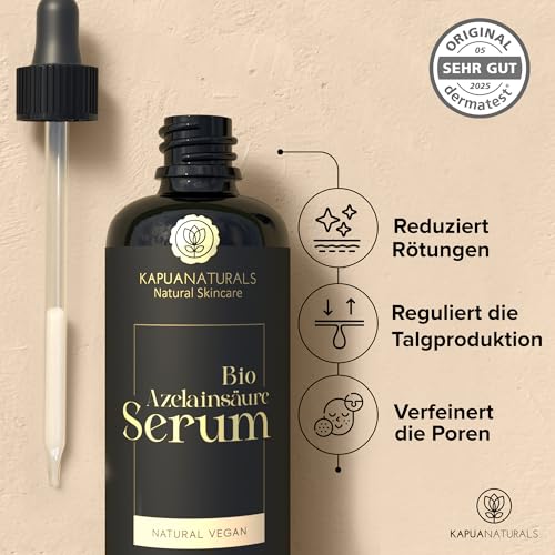 Unser Kapua Naturals Azelaic-Acid-Serum bietet hohedosiertes Azelaic Acid zur Reduzierung von Unreinheiten, Verfeinerung des Hautbildes und Minderung von Rötungen und Irritationen. Ideal für ölige, unreine oder Rosacea-neigende Haut.