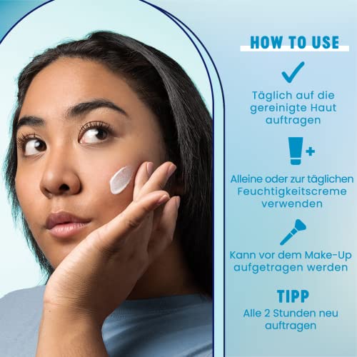 Kein weißer Überzug: Die Formel absorbiert schnell in alle Teintarten ein – für ein unsichtbares Ergebnis – Schutz gegen UV-Schwingungen – dermatologisch geprüft.