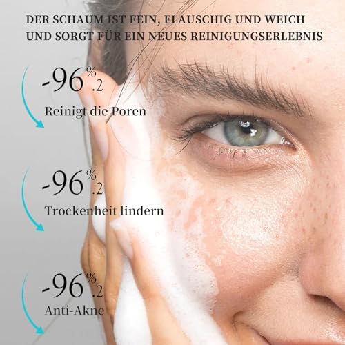 Sanfte und effektive Reinigung: Der Gesichtsreiniger mit Teebaumöl entfernt gründlich Schmutz, überschüssiges Öl und Make-up-Rückstände, indem er gleichzeitig die Haut erfrischt und beruhigt. Ideal für alle Hauttypen, besonders für ölige oder zu Unreinheiten neigende Haut.