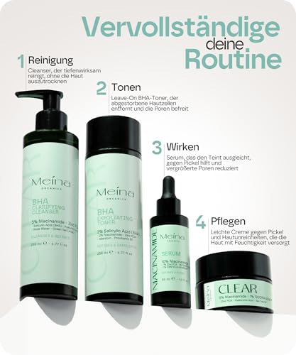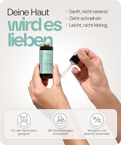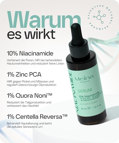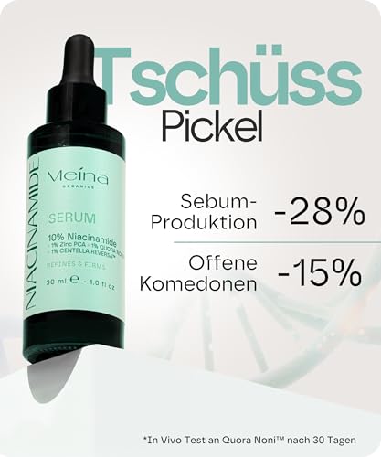 Meina 10% Niacinamide Serum gegen Pickel und Akne, Zink und Centella Asiatica enthaltend, für Akneische Gesichter, schne
