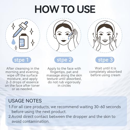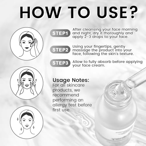Die Niacinamide-Serums-Textur schiebt schnell ein und klebt nicht. Die Formel hat den Empfindlichkeits-Test bestanden. Es wird empfohlen, vor der ersten Anwendung mit dem Anwenden an den Halsbeinschlag zu beginnen und Feuchtigkeitsprodukte zu verwenden, um den Tragekomfort zu verbessern.
