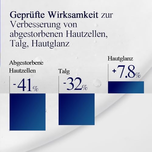 Er bietet 24 Stunden Feuchtigkeit, reduziert abgestorbene Hautzellen um 41,46%, verbessert Hautstrahlung um 7,8% und senkt Talgproduktion um 32,7%.