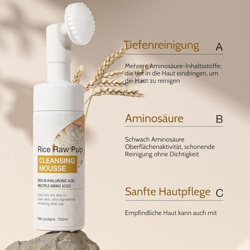 💗 【Reis Reinigungsschaum Gesicht】Unser Aminosäure-basierter feuchtigkeitsspendender Reinigungsschaum für das Gesicht ist ein sanfter, schäumender Reiniger mit Reisextrakt. Der akne-freundliche Reinigungsschaum hilft, Gesicht und Poren zu reinigen. Die Gesichtswäsche für trockene Haut hinterlässt keine fettigen Rückstände und erfrischt zu gleicher Zeit die Haut. Sie verbessert die Elastizität und stellt eine gleichmäßige und transparente Hauttextur wieder her.
