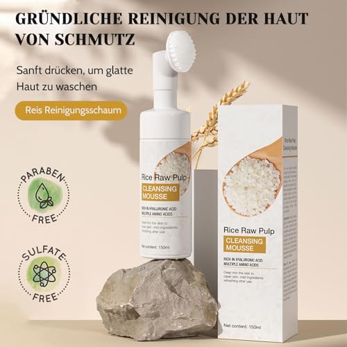 Reis Reinigungsschaum mit Silikon Reinigungsbürste für Akne-Erregerempfindliche Mitesser – Tiefenreinigung & Porenreinig