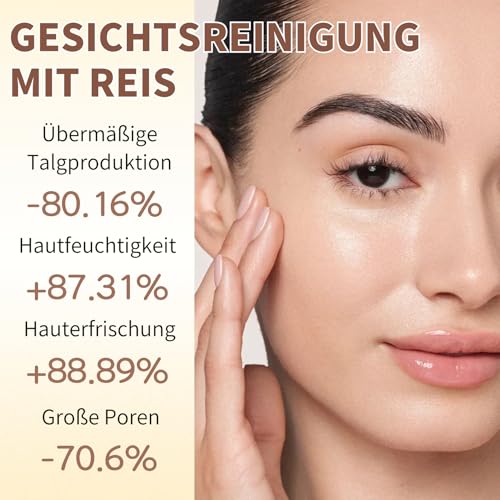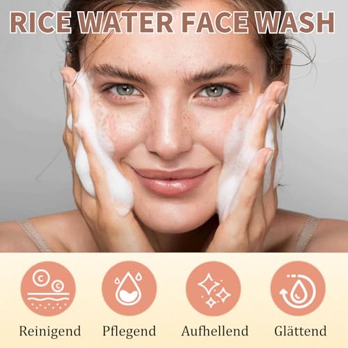 Hautpflege mit Reisextrakt: Unser Rice Water Face Wash bietet wertvollen Reisextrakt, der Ihre Haut tiefgehend mit Feuchtigkeit versehen und sie in das frische, gesunde undhydratisierte Gefühl einhüllt. Er sorgt für eine sanfte Reinigung und Pflege.