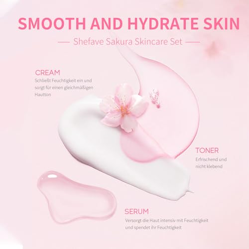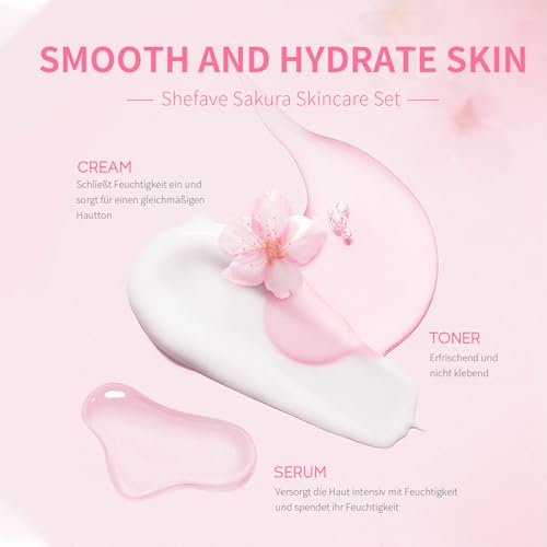 🌸 Verbesserung der Hautstruktur: Das Sakura skin care set für Frauen leuchtet die Haut auf, glättet sie und lässt die Haut strahlender und jünger wirken. Durch regelmäßige Anwendung werden raue Hautstellen geglättet, und die Haut fühlt sich insgesamt weicher und geschmeidiger an.