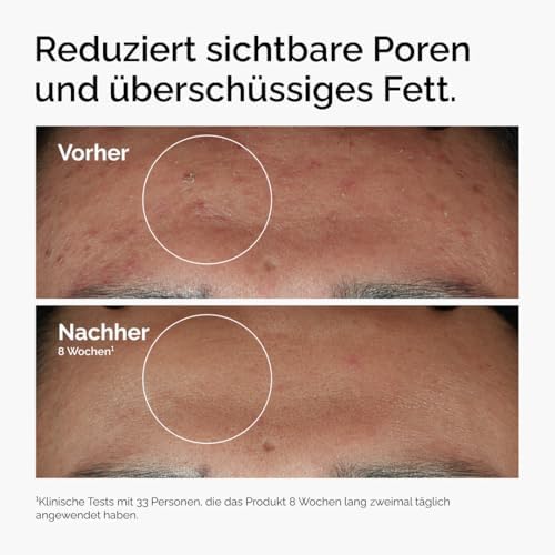 - Sichtbare Reduktion von Talgaktivität: Effektiv reduziert die sichtbare Talgaktivität auf der Haut.