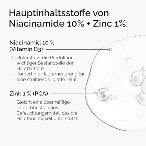 - Vitamin B3: Reduziert das Auftreten von Hautunreinheiten und verstopfte Poren.