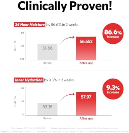 - Unterstützt von TIRTIR Milk Skin Toner: Verbessert Hautstruktur und verwahrt seidenweichen Glanz.