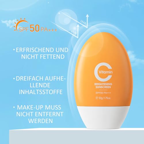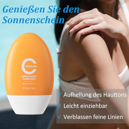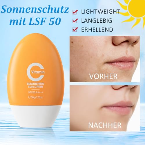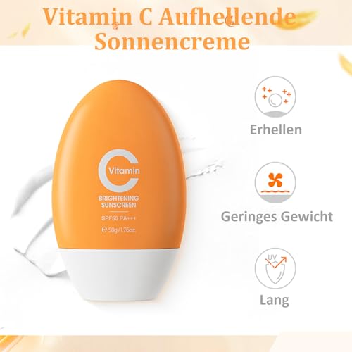 Vitamin C Sonnenschutz SPF 50 LSF für Alle Hauttypen – Feuchtigkeitsspendend & Anti-Aging (50g) Vitamin C Sonnenschutz